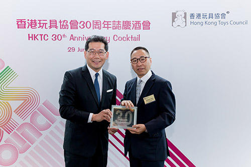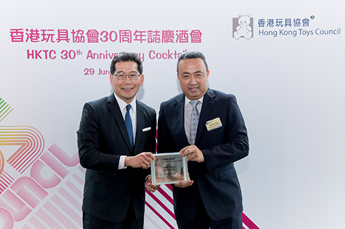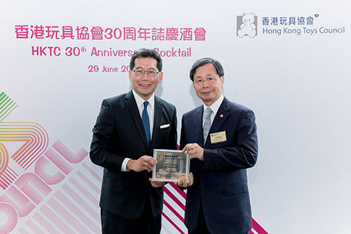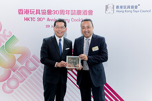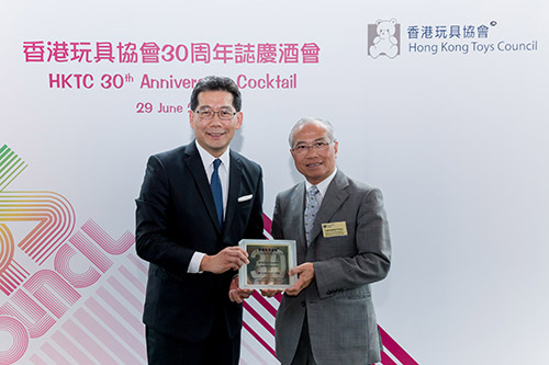 Hong Kong Toys Council (HKTC) organised a cocktail reception to celebrate its 30th anniversary on 29 June 2016. We were honoured to have the Hon Gregory So Kam-leung, GBS, JP, the Secretary for Commerce and Economic Development of the Government of HKSAR as our Guest-of- Honour. Souvenirs were presented to the Honourary Presidents of HKTC during the cocktail in order to recognise their contributions in the past 30 years. Over 70 guests attended and thoroughly enjoyed the celebration.